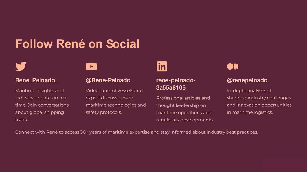 Connect with René to access 30+ years of maritime expertise and stay informed about industry best practices.