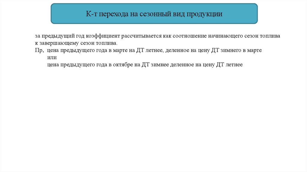 К-т перехода на сезонный вид продукцииза предыдущий год коэффициент рассчитывается как соотношение начинающего сезон топлива