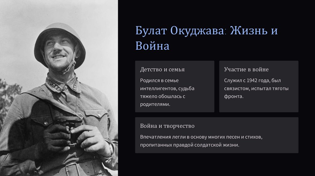 Отечественной войны. Автор – Булат Окуджава, поэт и ветеран.