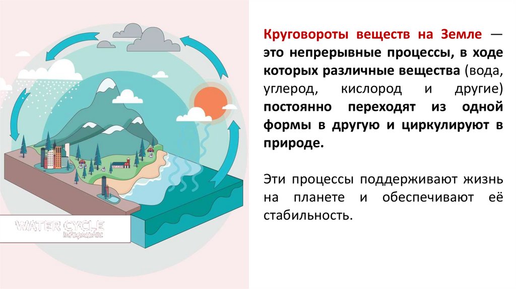 Круговороты веществ на Земле —это непрерывные процессы, в ходе