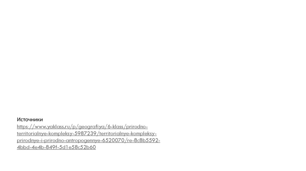 Источникиhttps://www.yaklass.ru/p/geografiya/6-klass/prirodnoterritorialnye-kompleksy-5987239/territorialnye-kompleksyprirodnye-i-prirodno-antropogennye-6520070/re-8c8b55924bbd-4e4b-849f-5d1e58c52b60