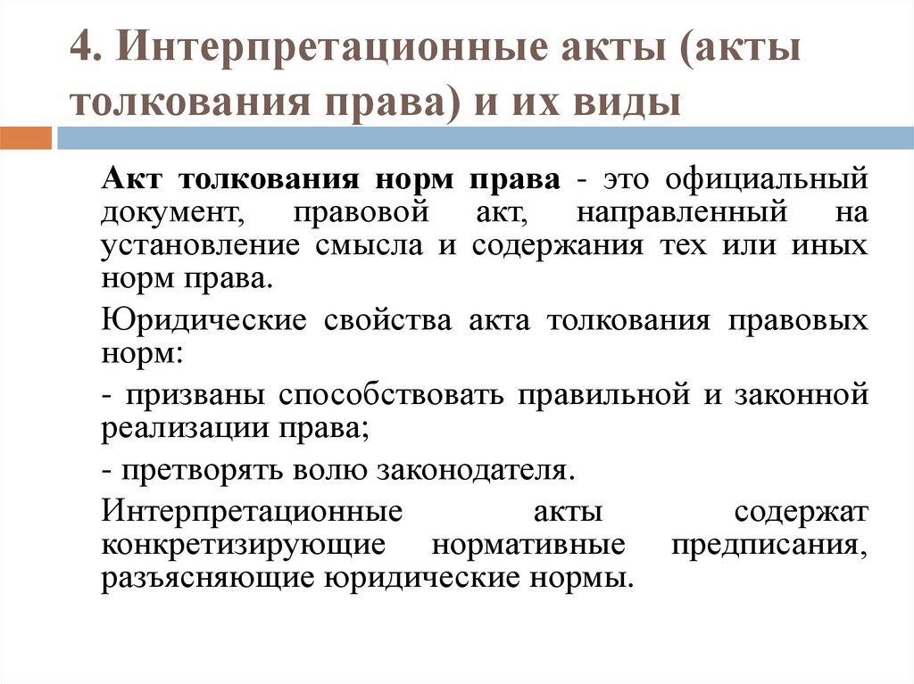 12. 4. Интерпретационные акты (акты толкования права) и их виды