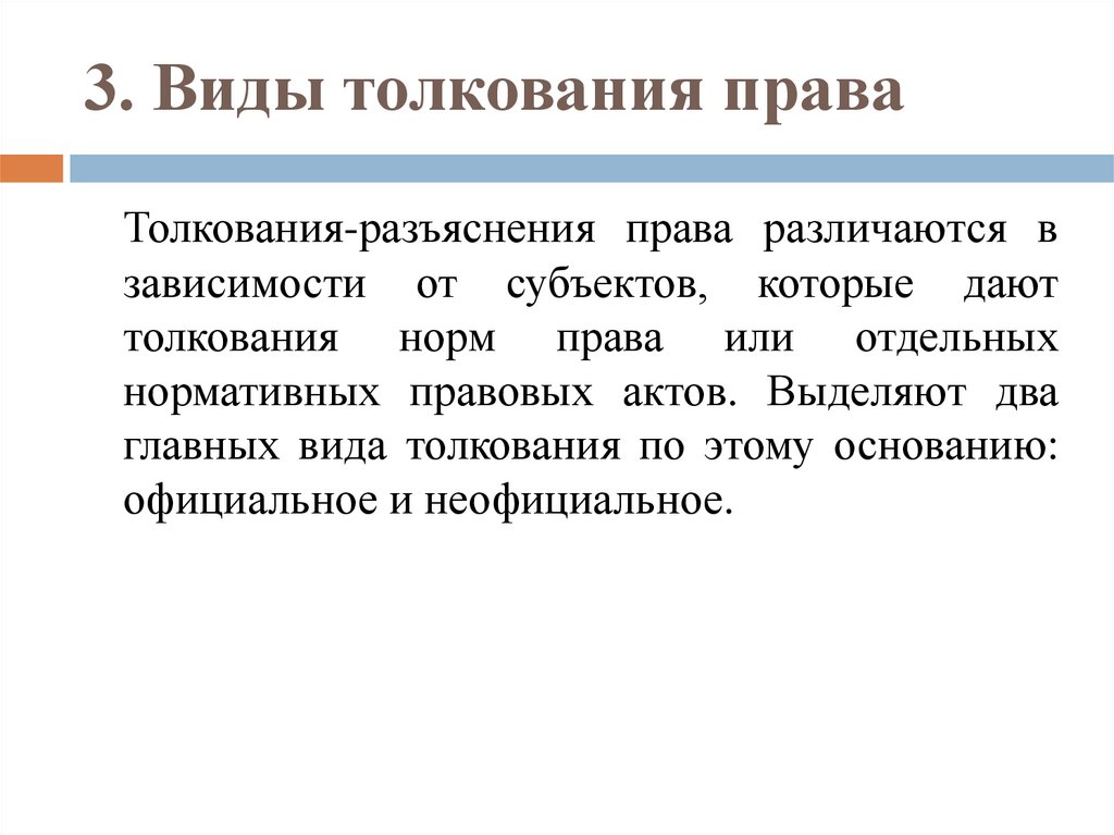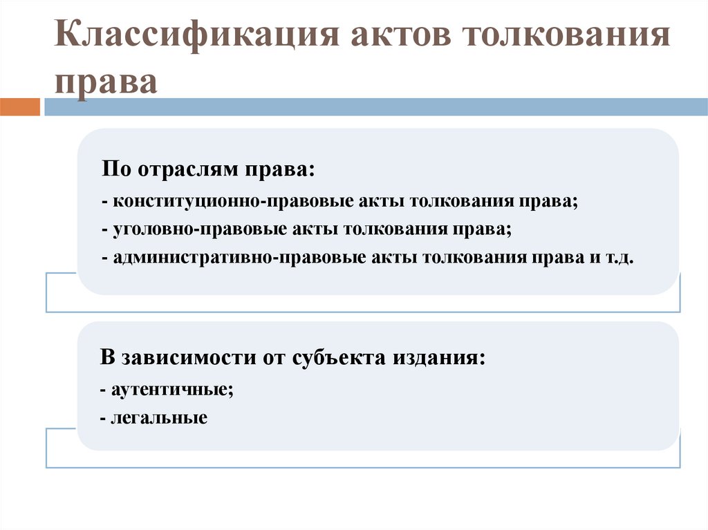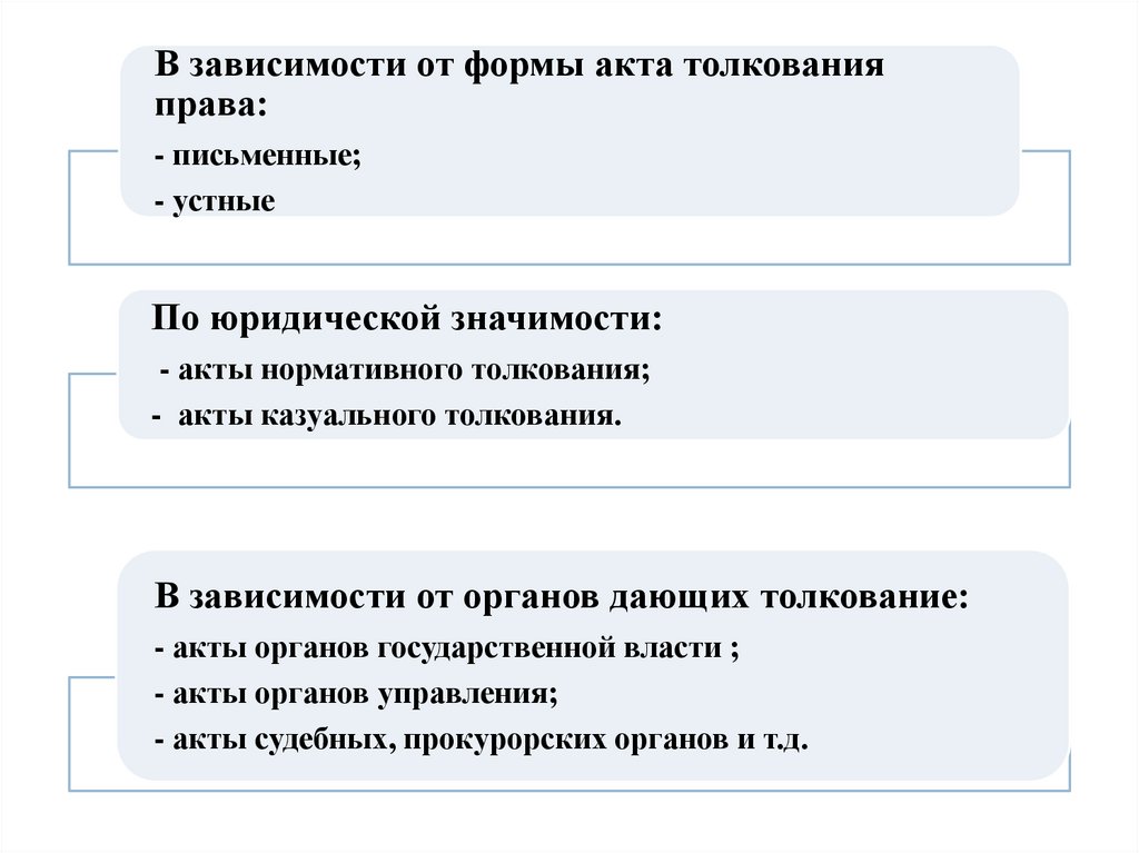Толкования-разъяснения права различаются взависимости от субъектов, которые дают