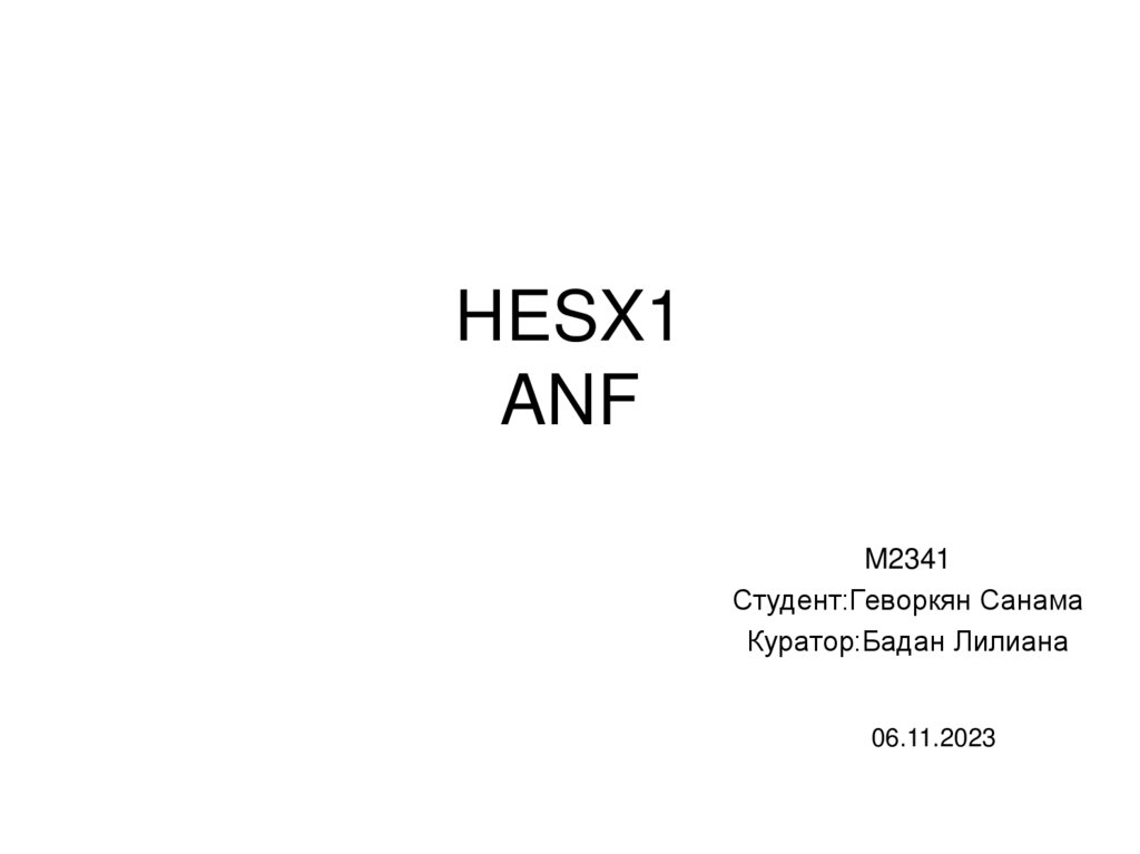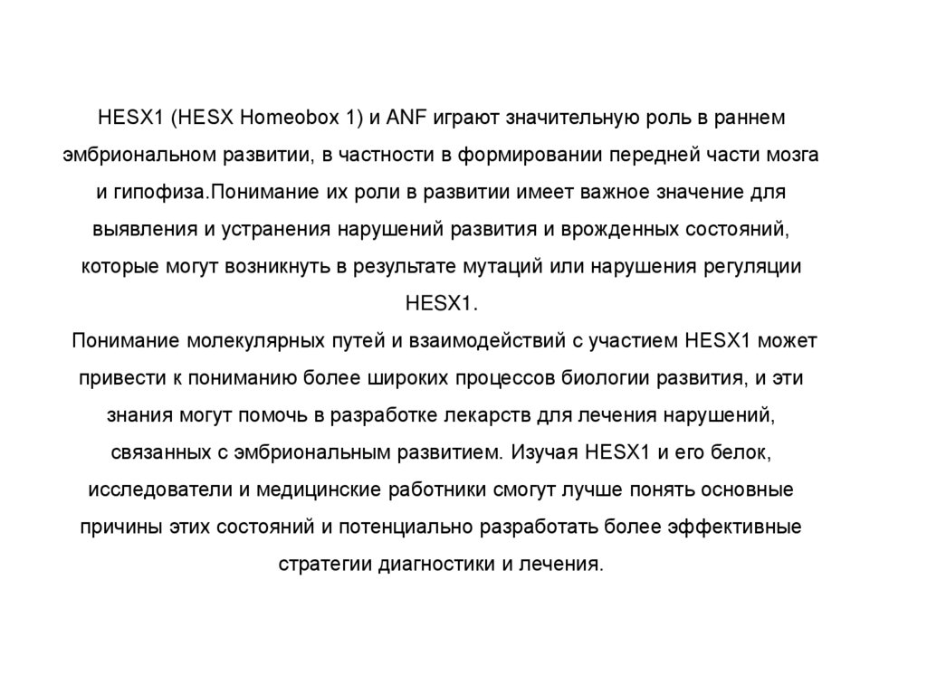 HESX1 (HESX Homeobox 1) и ANF играют значительную роль в раннемэмбриональном развитии, в частности в формировании передней части мозга