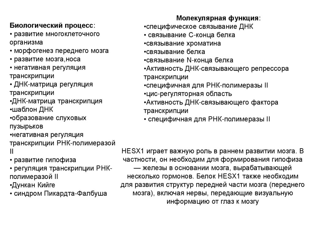 • регуляция транскрипции РНКнесколько гормонов. Белок HESX1 также необходим