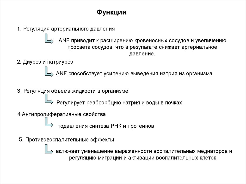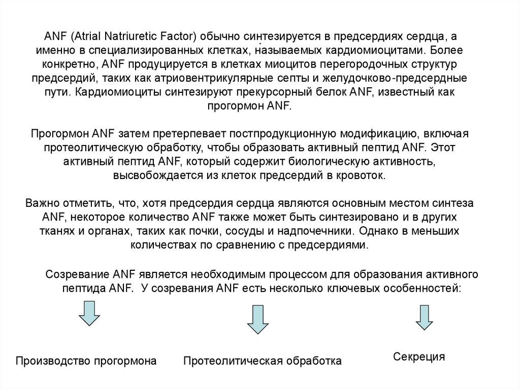 ANF (Atrial Natriuretic Factor), или предсердный натрийуретический фактор,представляет собой гормон, биологически активный пептид. Его первичная