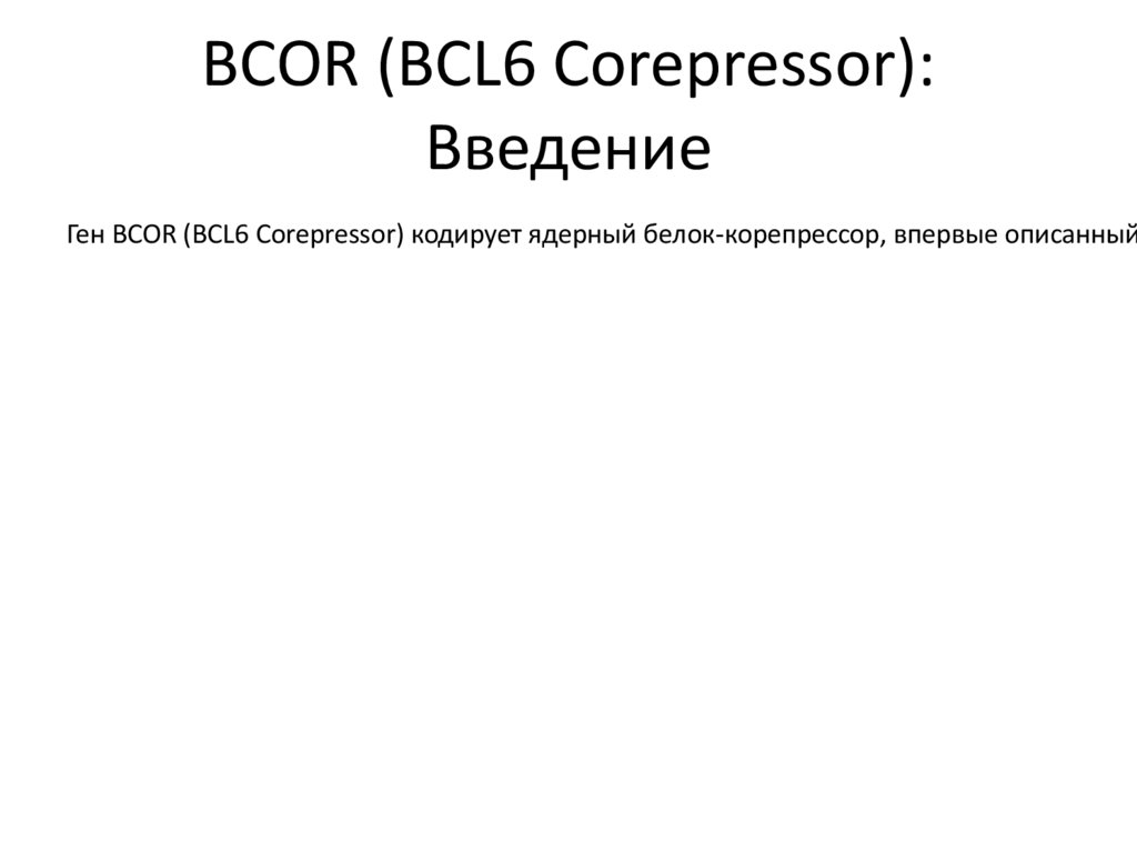 Ген BCOR (BCL6 Corepressor) кодирует ядерный белок-корепрессор, впервые описанный