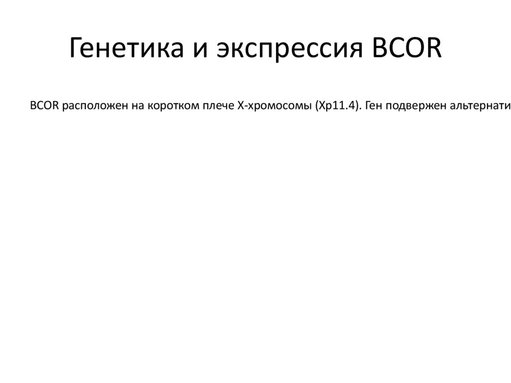 Генетика и экспрессия BCORBCOR расположен на коротком плече X-хромосомы (Xp11.4). Ген подвержен альтернатив