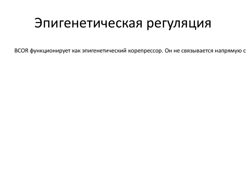 Эпигенетическая регуляцияBCOR функционирует как эпигенетический корепрессор. Он не связывается напрямую с
