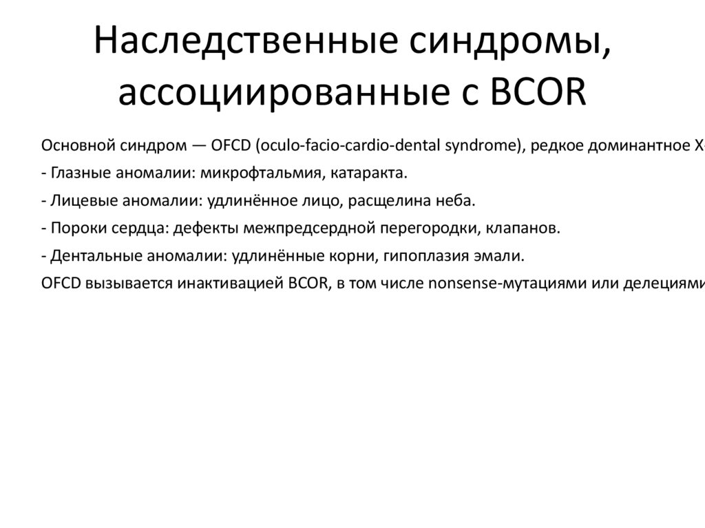 OFCD вызывается инактивацией BCOR, в том числе nonsense-мутациями или делециями
