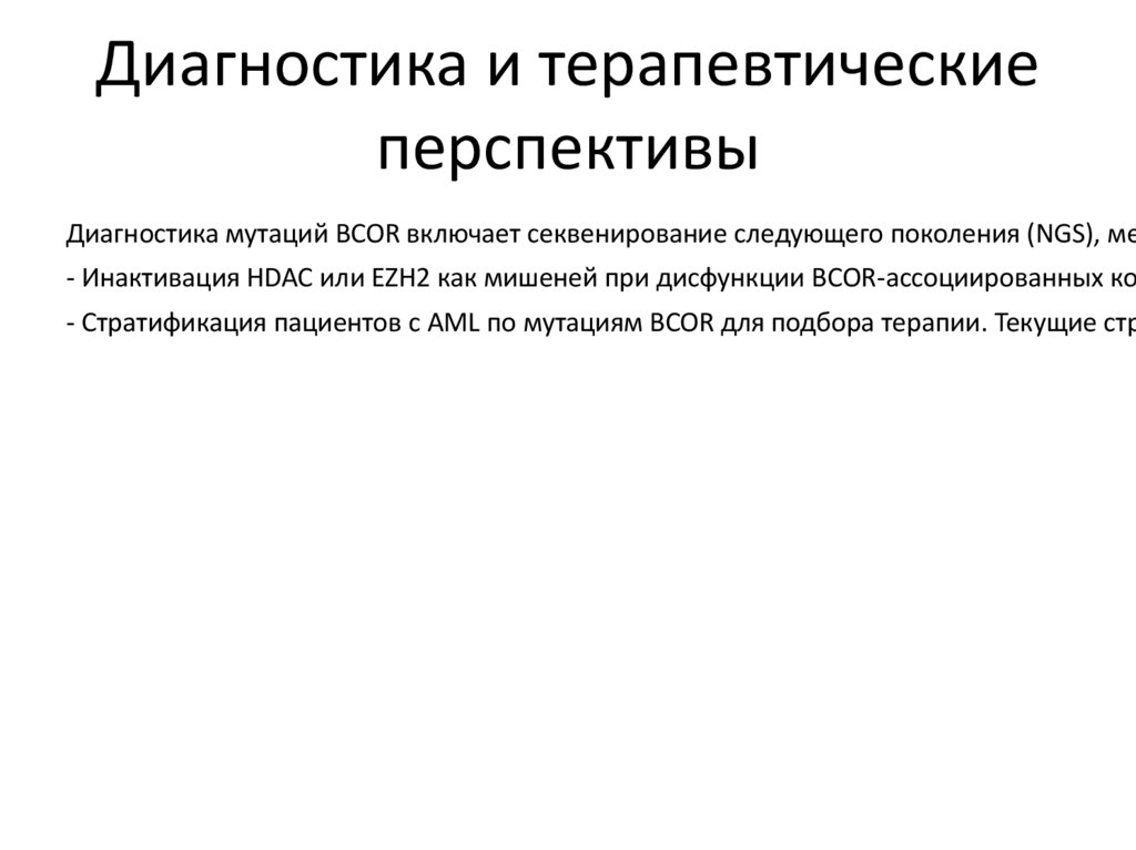 - Стратификация пациентов с AML по мутациям BCOR для подбора терапии. Текущие стр