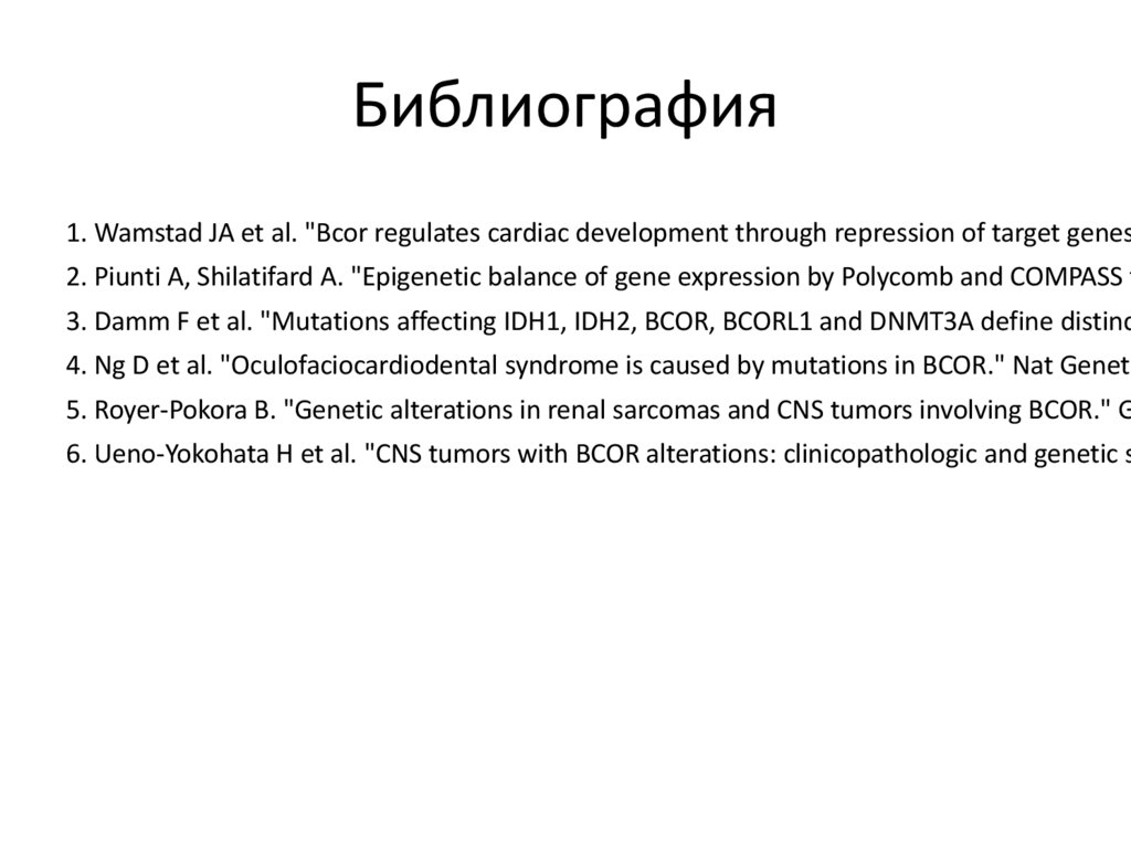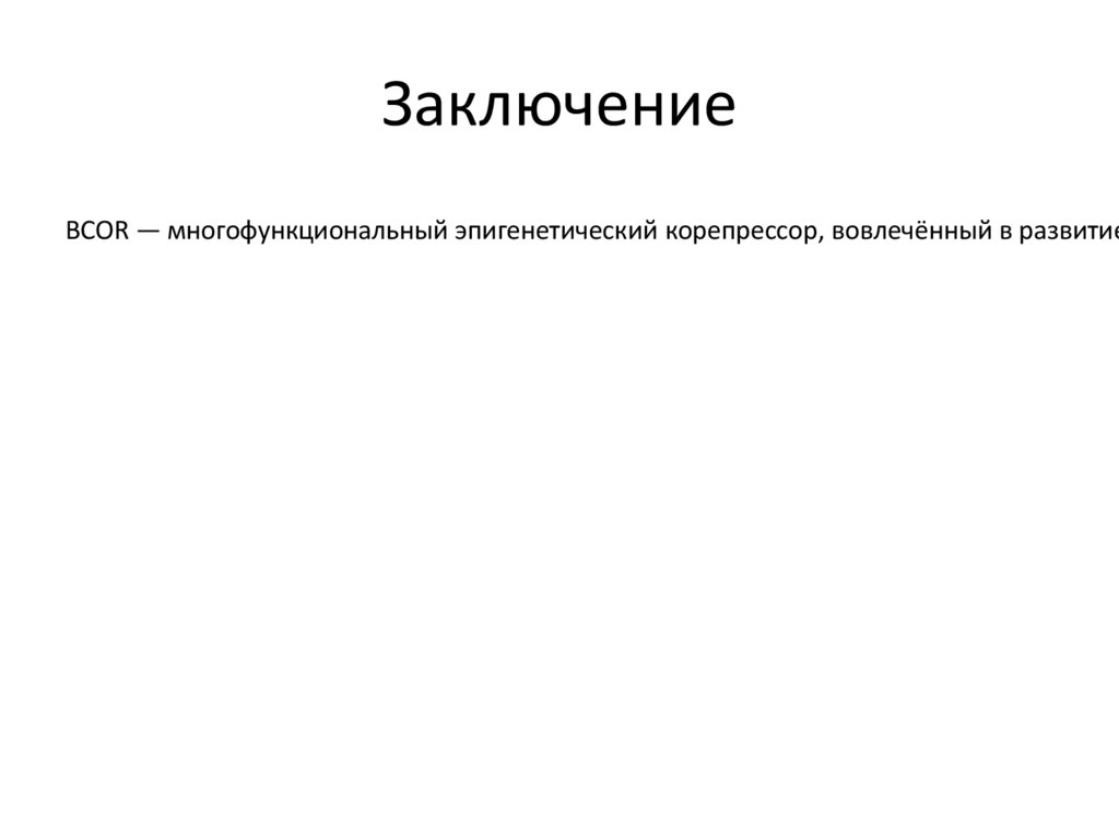 ЗаключениеBCOR — многофункциональный эпигенетический корепрессор, вовлечённый в развитие