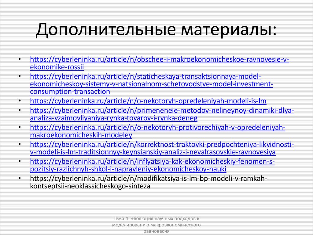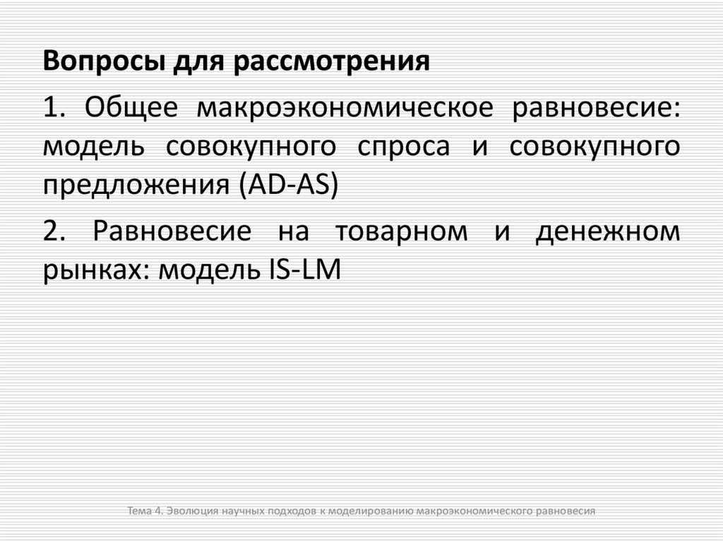Тема 4. Эволюция научных подходов к моделированию макроэкономического равновесия