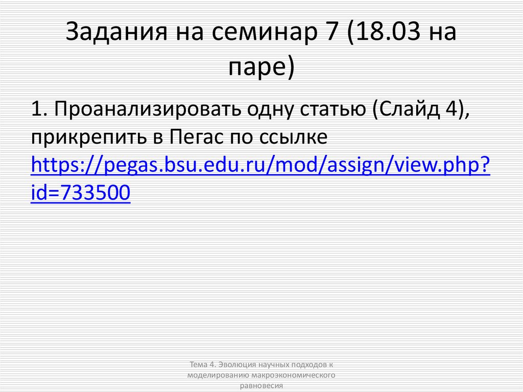 1. Проанализировать одну статью (Слайд 4),прикрепить в Пегас по ссылке