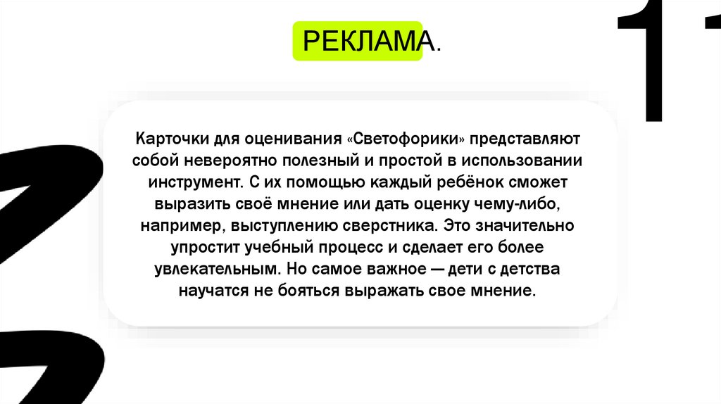 РЕКЛАМА.Карточки для оценивания «Светофорики» представляют