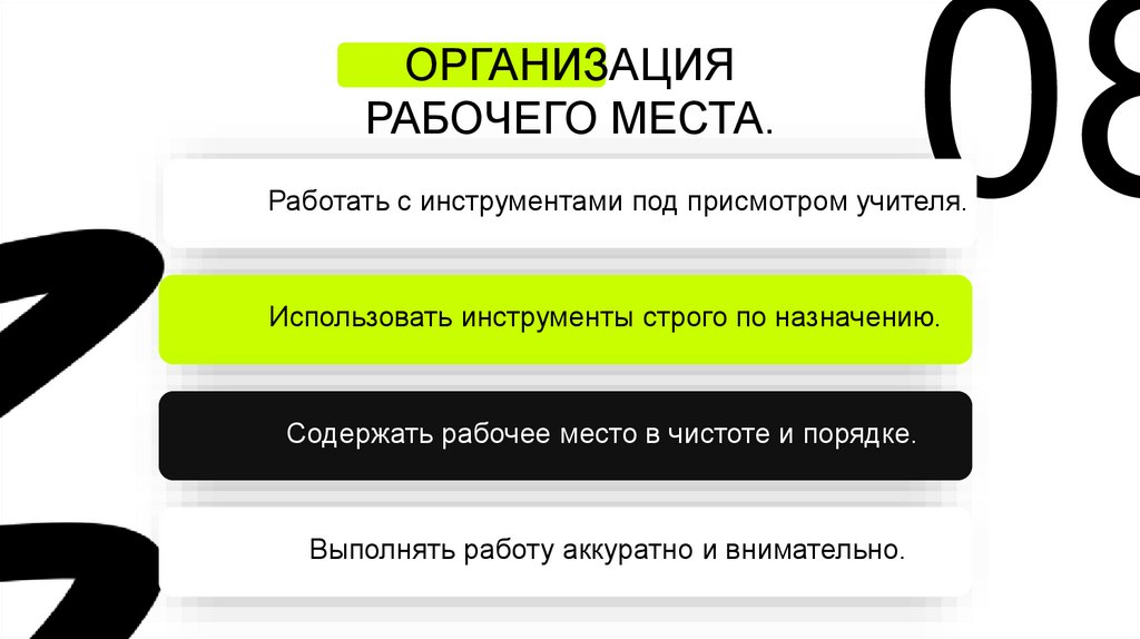ОРГАНИЗАЦИЯРАБОЧЕГО МЕСТА.