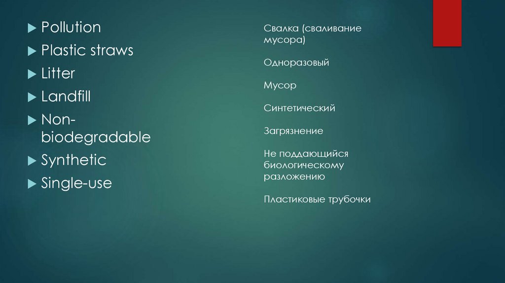 Repeat the vocabulary.Write about plastic pollution in Russia. Not less than 8 sentences.