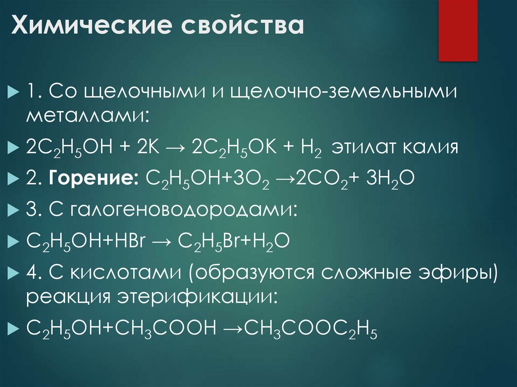 2C2H5OH + 2К → 2С2Н5ОК + Н2 этилат калия