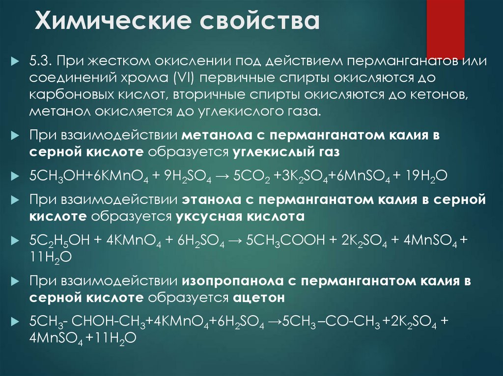 5.3. При жестком окислении под действием перманганатов илисоединений хрома (VI) первичные спирты окисляются до