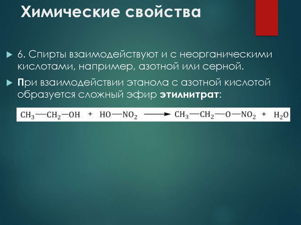 5. Спирты взаимодействуют и с неорганическими кислотами,