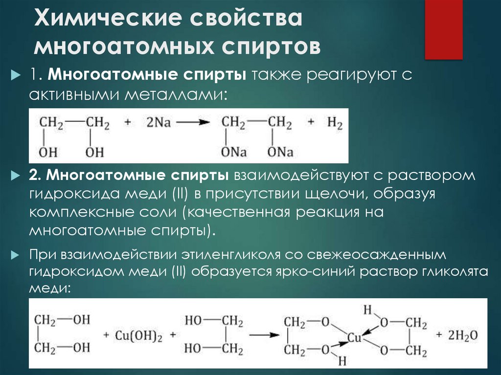 1. Многоатомные спирты также реагируют сактивными металлами: