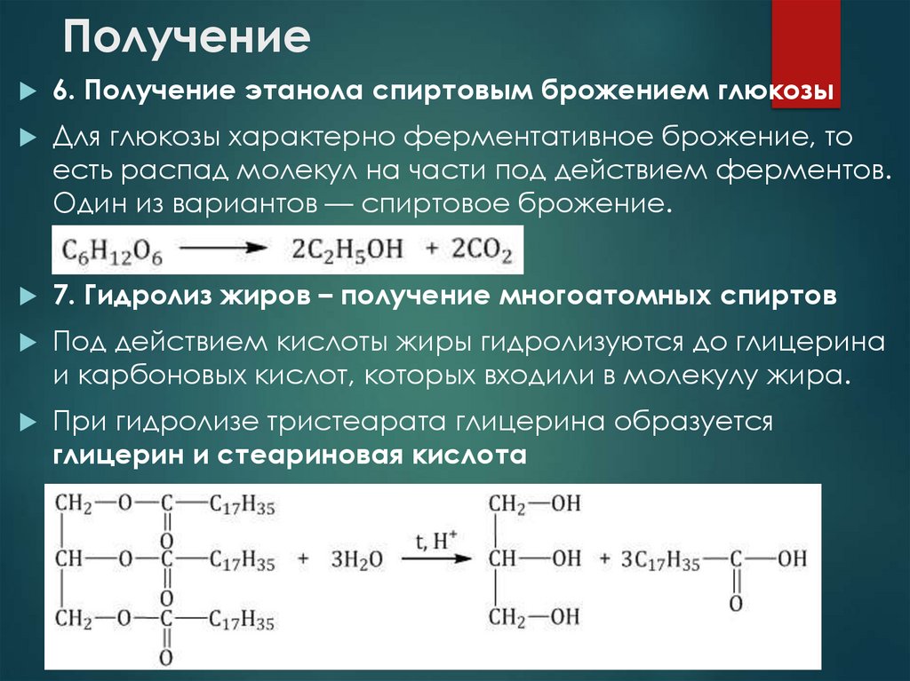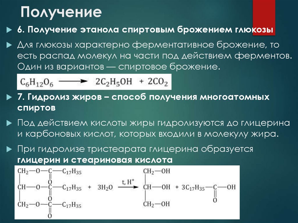 6. Получение этанола спиртовым брожением глюкозыДля глюкозы характерно ферментативное брожение, то