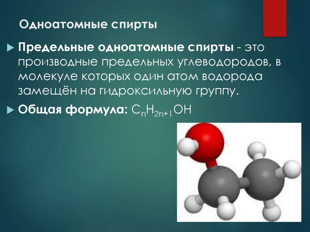 Предельные одноатомные спирты - этопроизводные предельных углеводородов, в