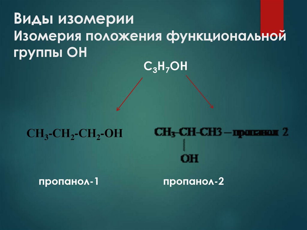 9. Виды изомерии Изомерия положения функциональной группы ОН