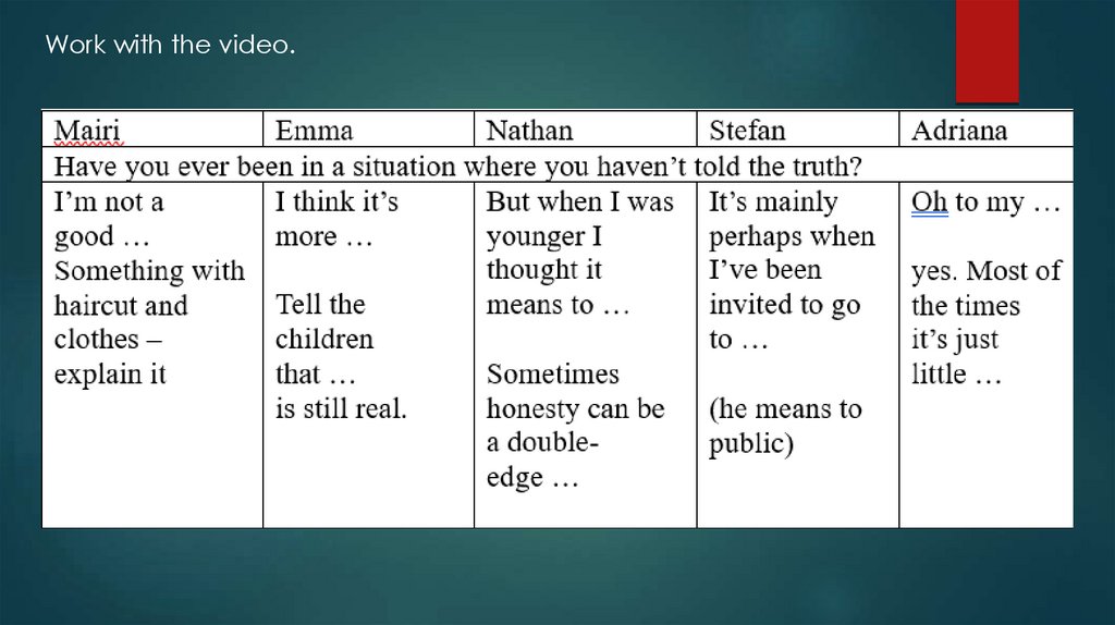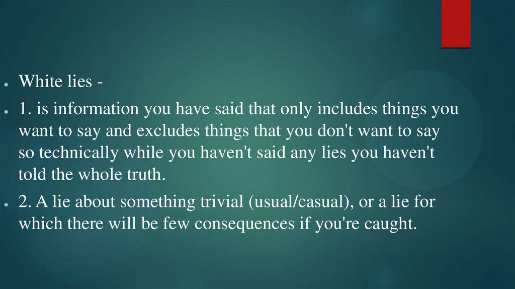 White lies ● 1. is information you have said that only includes things youwant to say and excludes things that you don't want to say