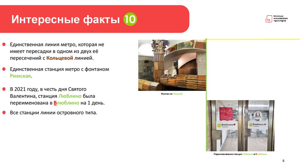 Интересные фактыЕдинственная линия метро, которая не