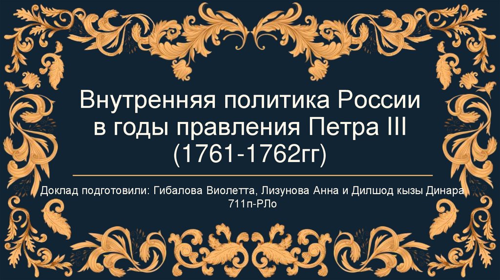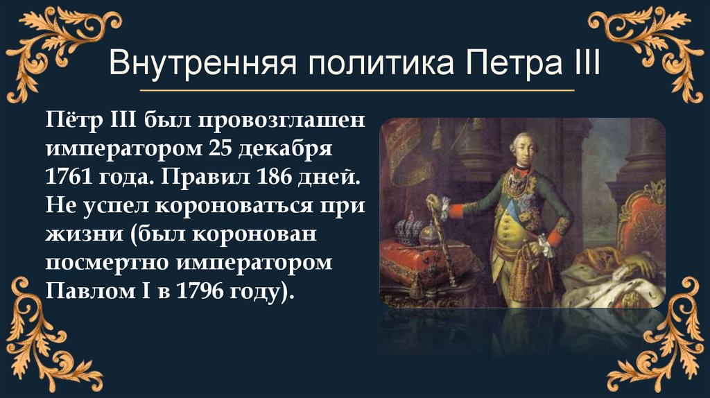 1. Внутренняя политика России в годы правления Петра III (1761-1762гг)