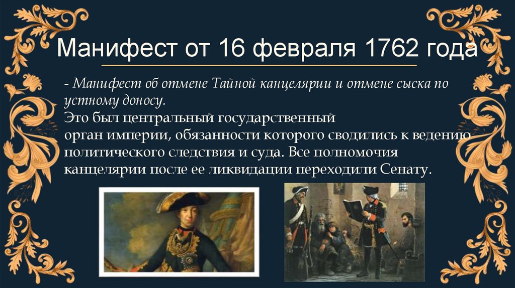Манифест от 16 февраля 1762 года- Манифест об отмене Тайной канцелярии и отмене сыска по