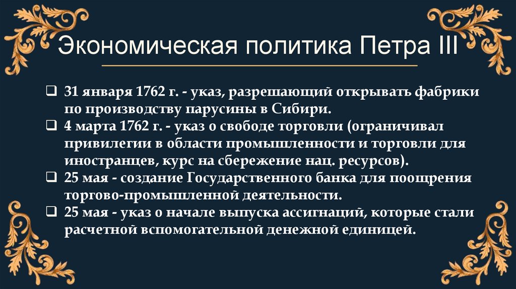 17. Экономическая политика Петра III
