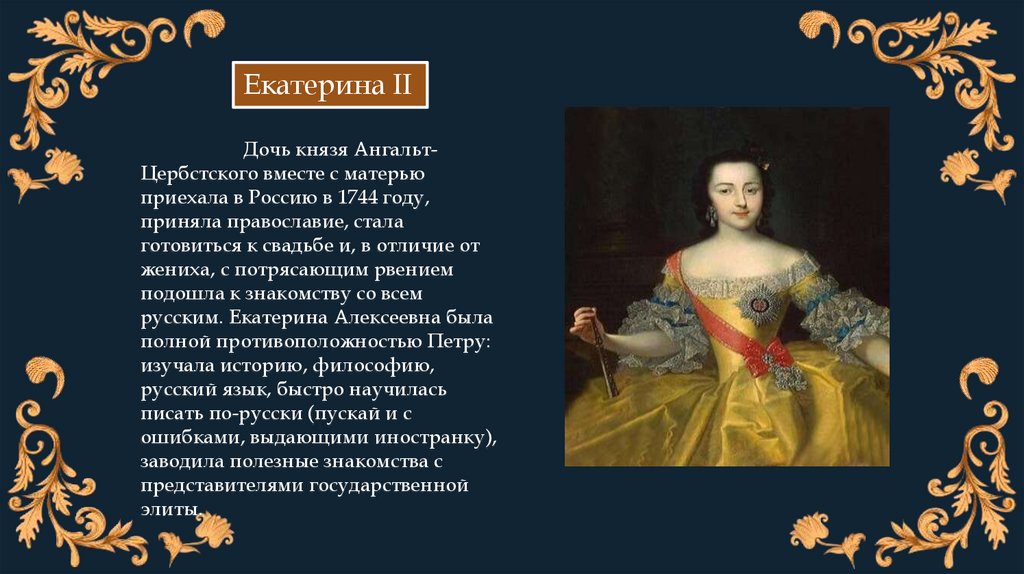 русским. Екатерина Алексеевна была