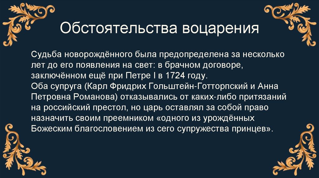 Обстоятельства воцаренияПосле смерти Елизаветы