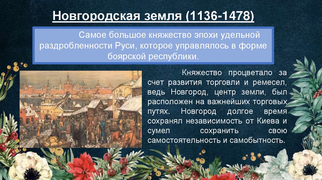 Новгородская земля (1136-1478)Самое большое княжество эпохи удельной