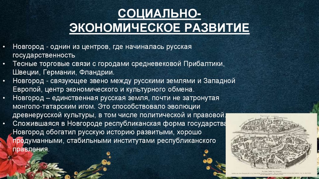 СОЦИАЛЬНОЭКОНОМИЧЕСКОЕ РАЗВИТИЕНовгород - однин из центров, где начиналась русская
