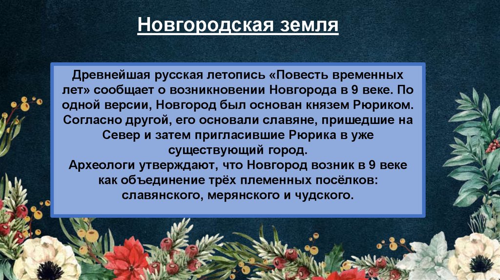 Новгородская земляДревнейшая русская летопись «Повесть временных