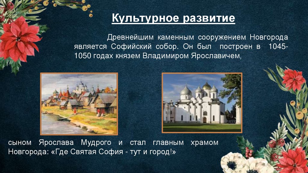 Культурное развитиеДревнейшим каменным сооружением Новгорода