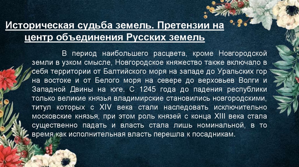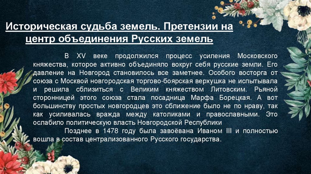 Историческая судьба земель. Претензии нацентр объединения Русских земель