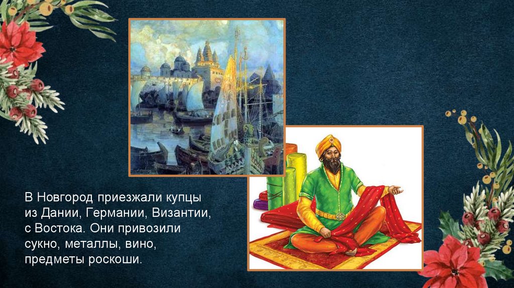 В Новгород приезжали купцыиз Дании, Германии, Византии,