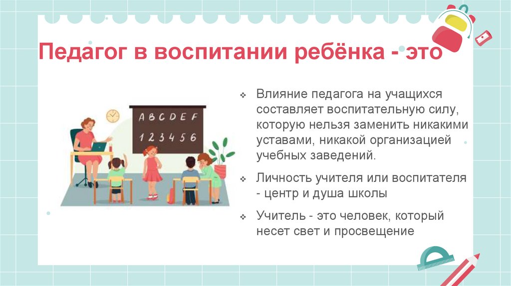 Педагог в воспитании ребёнка - этоВлияние педагога на учащихся