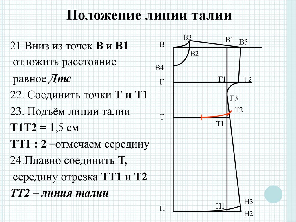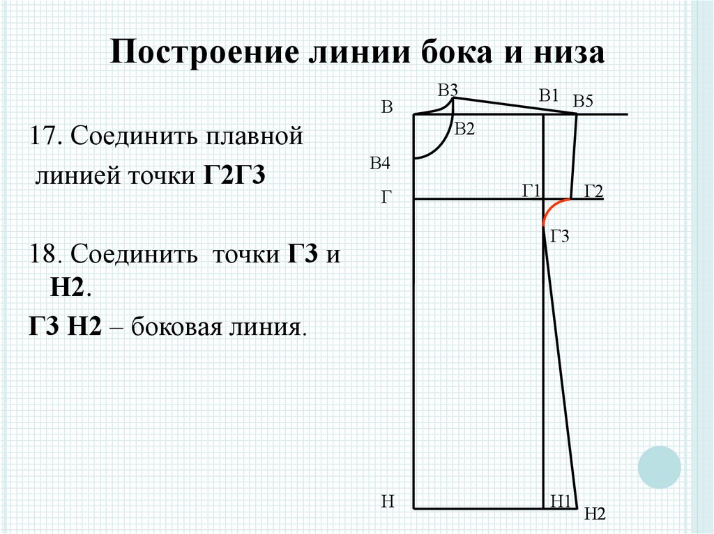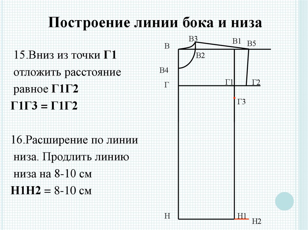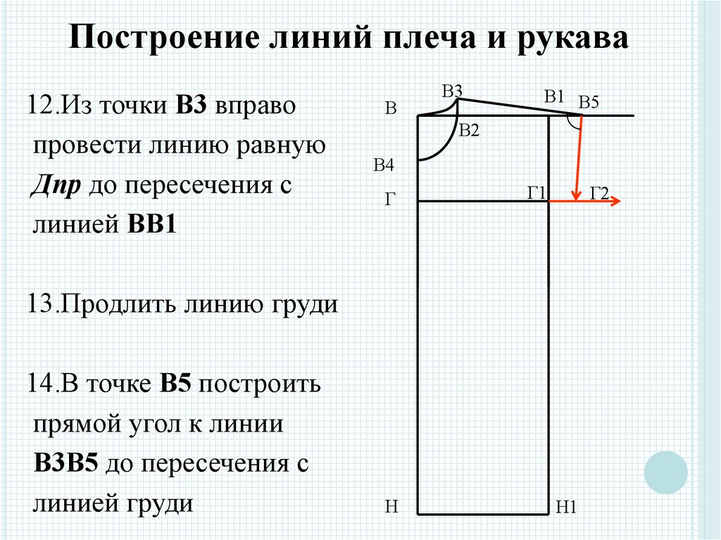 Построение линий плеча и рукава12.Из точки В3 вправо