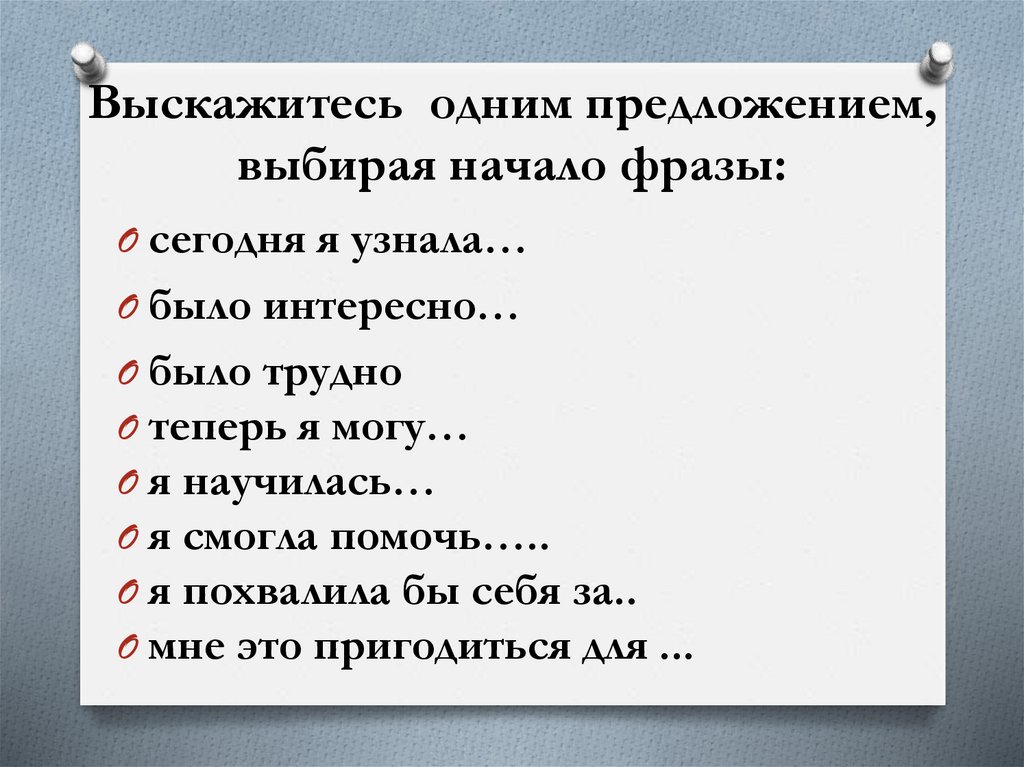 21. Выскажитесь одним предложением, выбирая начало фразы: