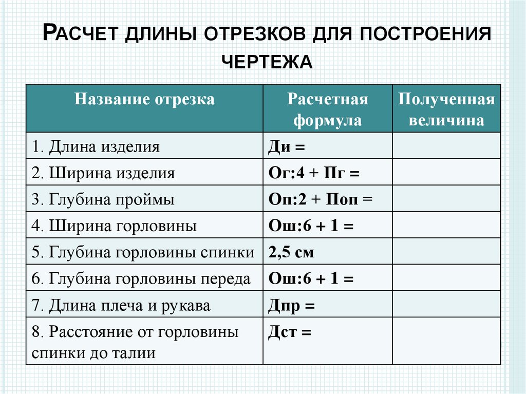 РАСЧЕТ ДЛИНЫ ОТРЕЗКОВ ДЛЯ ПОСТРОЕНИЯЧЕРТЕЖА
