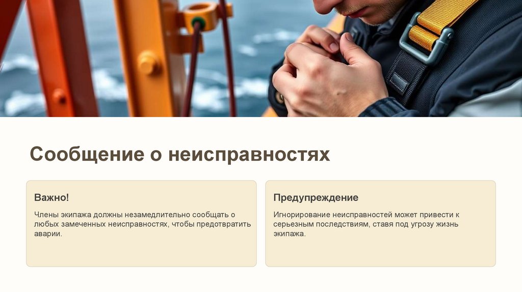 себя: 1) Сообщение о неисправностях судового оборудования, систем или других элементов, создающих опасность.
