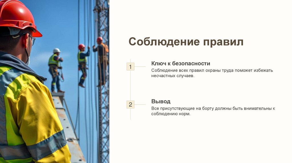 перчатки и другие устройства, которые обеспечивают безопасность при работе на высоте. 3) Соблюдение всех
