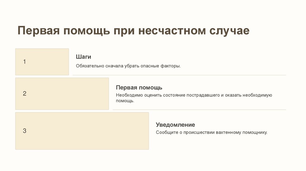 случае несчастного случая необходимо немедленно удалить факторы, потенциально представляющие опасность,