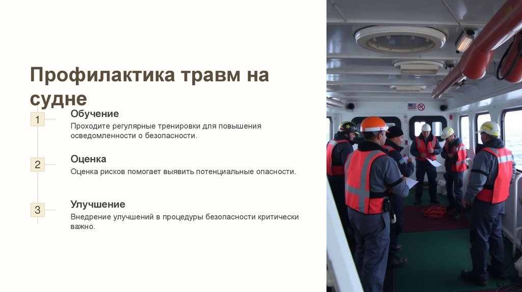 инструкций и правил охраны труда, относящихся к различным профессиям и видам работ на борту судна.