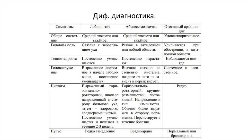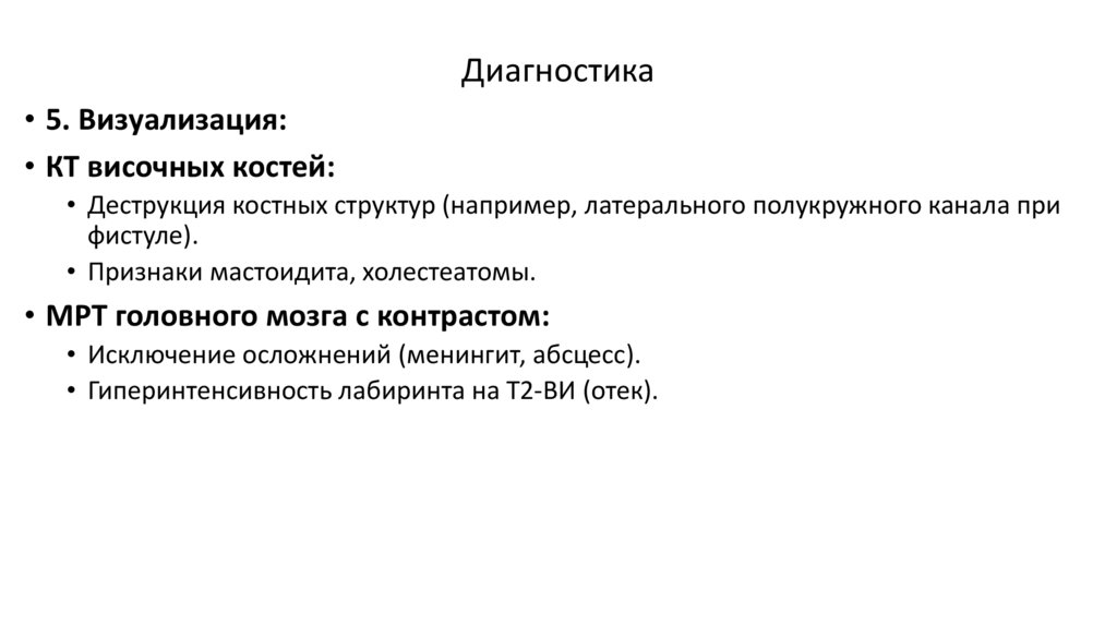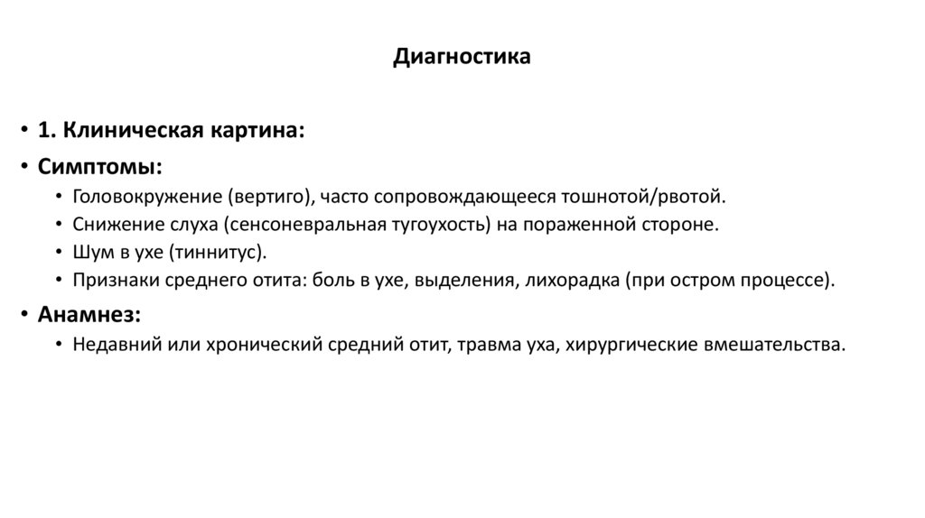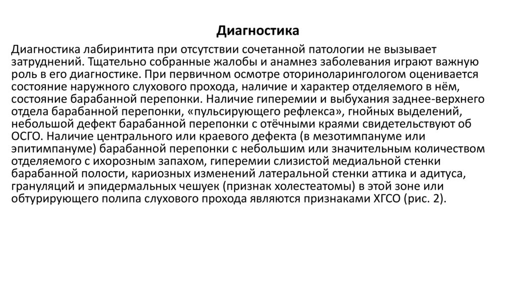 ДиагностикаДиагностика лабиринтита при отсутствии сочетанной патологии не вызывает